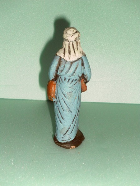 Me han entregado una caja en la que decian que habia un belen antiguo, que hera de unos señores de 80 años, y que tenia figuras antiguas, al abrirla y quitare mucho cascareo de plantas naturales muy deterioradas y apartar muchas figuras de los chinos, y casas de plastico, y de corcho pintado, entre bolas de porex en bolsas para embalar aparecio este misterio, y estas dos figuras. El misterio pone que es de Ortigas, tanto en la Virgen, como en el Niño, como en San Jose lo ponen, pero el resto no lo pone, se ve que son murcianas pero se de quien es.