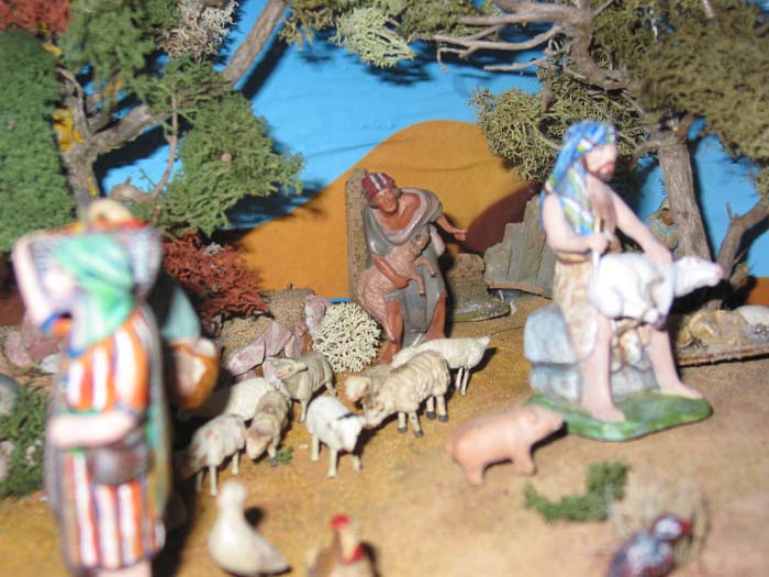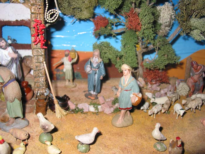 Hola Miim pues las figuras son de todo un poco hay un par de Mayo, otro par Castells, el nacimiento y dos pastores son de barro antiguos y pintados por mi, y alguna popular catalana, en fin un pequeño mezclote. Los arboles pues muy sencillo buscas un tronquito de romero retorcido y simplemente pones cola blanca en las ramas y vas envolviendo con liquen de islandia esas ramas, es muy facil. El liquen dicen que es caro, la verdad es que compre un monton hace ya algun tiempo en un comercio que lo liquidaba y me costo mas baratito, despues en el tronco pones alguna piedra para que pese y sea mas estable y ya lo tienes, si con un tronquito no te gusta pues pones dos y los pegas. Me alegro que te guste. Un saludo