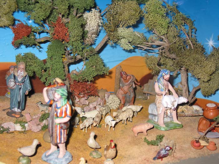 Hola Miim pues las figuras son de todo un poco hay un par de Mayo, otro par Castells, el nacimiento y dos pastores son de barro antiguos y pintados por mi, y alguna popular catalana, en fin un pequeño mezclote. Los arboles pues muy sencillo buscas un tronquito de romero retorcido y simplemente pones cola blanca en las ramas y vas envolviendo con liquen de islandia esas ramas, es muy facil. El liquen dicen que es caro, la verdad es que compre un monton hace ya algun tiempo en un comercio que lo liquidaba y me costo mas baratito, despues en el tronco pones alguna piedra para que pese y sea mas estable y ya lo tienes, si con un tronquito no te gusta pues pones dos y los pegas. Me alegro que te guste. Un saludo