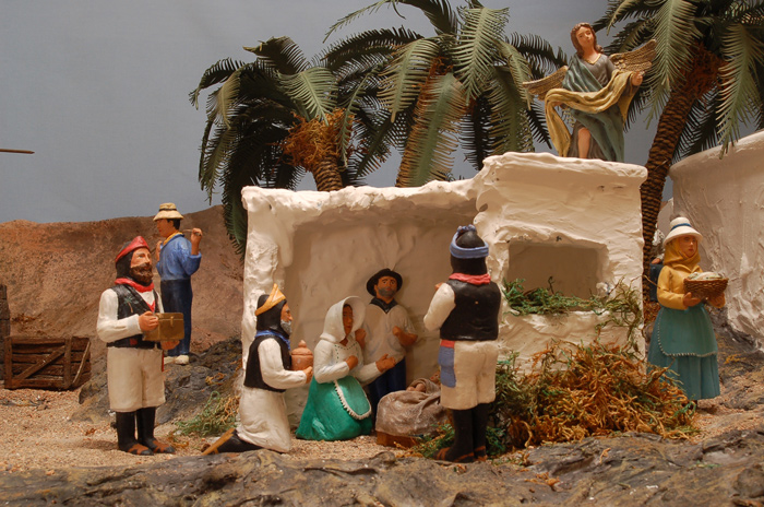 Las figuras están hechas por mí. La idea viene de unas figuras que regalaron hace unos años un periodico local; primero empecé por adaptar algunas y al final me decidí por hacerlas con pasta de modelaje, de la que no necesitra cocción. No había hecho nunca antes ninguna figura; me costó bastante al principio, pero poco a poco han ido saliendo.