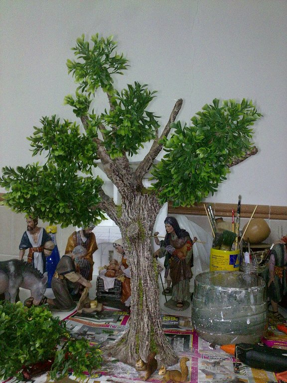 Perdón por la calidad de las fotos, pero son del móvil. Y también comentar que el árbol (falta ponerle las hojas) está realizado con la técnica que nos enseñó Juani (Jupa) en el III Cursillo de Técnicas Belenísticas de Fuente Álamo.