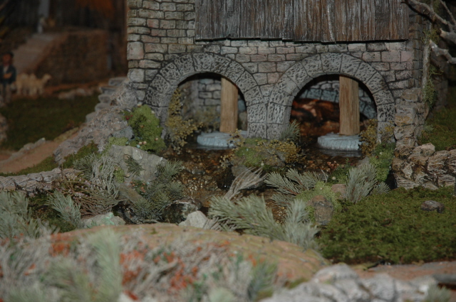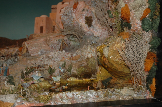 Lilo como veras complazco tu petición y adjunto algunas fotografias de detallas del Belén, Las dimensiones del mismo son de 7 metros de fondo por 4 de anchura total 28 metros cuadrados, las construcciones son de Escayola y los montes Porespan y escayola, 10.000 Watios de Luz y sonido ambiente todo controlado con un controlador de 20 salidas de FMAS que es un aparato magnifico en todos los sentidos durante el mes que ha estado abierta la exposición ha realizado un total de más de 30,000 ciclos, controlando luces ,humo y agua, el belen tiene un rio de 7 metros. Espero haberte informado debidamente,