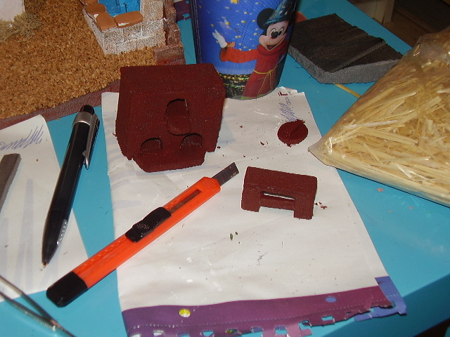 Hola belenistas. Hoy he encontrado unas fotos de un paso a paso del año pasado. Se trata de un belén pequeñito que hice para el trabajo. Las figuras son de LEROY MERLIN y la técnica salta a la vista. Con un cuter y corcho estruido, se pueden hacer maravillas. La pintura es satinada, al agua, (la otra ,se come el corcho). La palmera es de las de la señora Lola, y el resto, de cosecha propia. Ahí van las fotos.