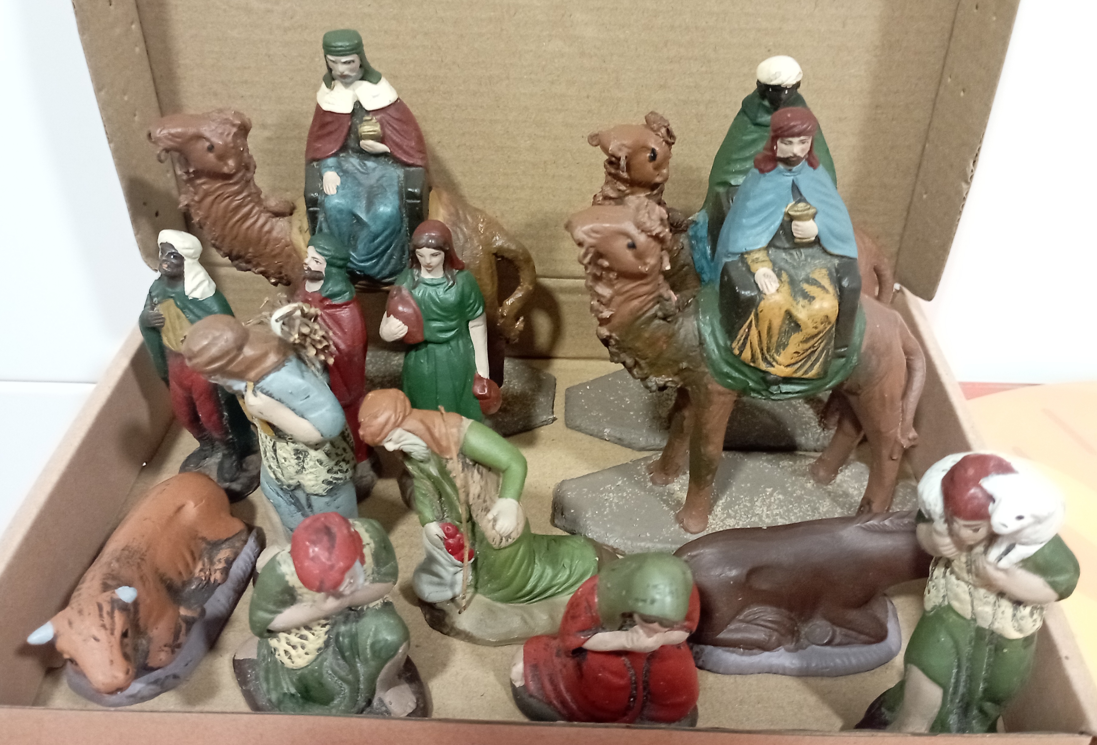 ¡Feliz Año Nuevo! Adjunto imágenes de los Belenes que colocamos de este año. El de mi hija, con las figuras de Alborox, el clásico (este año incorporamos un posible pastor de Ortigas, en teoría de 21 cm, que arreglé un poco para disimular las fracturas que tenía) y el que nos animamos a poner en la ventana (pese a que fijamos todo, el viento lo mandó a hacer gárgaras, así que al final optamos por otro más simple que de momento aguanta). Después de unos cuantos años volvimos a hacer los portales y, aunque son sencillos y únicamente trabajamos la fachada, estamos bastante contentos con los resultados 😃. ¡Un cordial saludo!