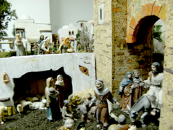 En cuanto a las figuras, la mayoría son de Jose Mayo Lebrija. el grupo de la coronación y mofa de Cristo es un conjunto hecho a palillo por un escultor de Puente Genil, amiguete mio, que además de tallar magistralmetne la madera y hecer unas imagenes sobervias, tambien hace figuras en barro tanto de Nacinmientos como de Pasión, se llama Pedro Garcia, es licenciado en -bellas Artes y actualemnte imparte clases en un instituo de Baeza (Jaén). Es muy bueno y las hace por encargo, claro está. El Jesús del beso de Judas es de marmolina y policromado por mi y el que hace de Judas es un San José muricano al que le puse un turbante y lo camufle. El resto de los personajes secundarios son murcianos, de los que uso en las escenas del Belén de Navidad.
