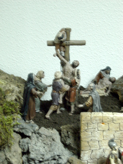 Amigo Julen, la Pasión no es sólo la muerte de Cristo, sino todos los acontecimientos que le ocurrieron a Jesús desde su conversación en el pozo con la Samaritana hasta la aparcición a María Magdalena tras su gloriosa resurrección, y algunos constructores de este tipo de "belenes" incluyen hasta la escena del Bautismo de Cristo y hasta la Ascensión. Yo otros años, lo he hecho más grande que este año y ademas de estas escenas he puesto la Expulsión de los mercaderes del templo, las Negaciones de san Pedro, la bofetada en el Sanedrín, Jesús caido camino del Calvario y el traslado desde la Cruz, una vez ya descendido, hasta el sepulcro. Tengoentendido eque por Cataluña y en Santander estas manifestacion es escénicas de la vida de Cristo en su adultez son bstante conocidas. Espero que si hay alguien que conozca lugares de allí nos las pongan.
