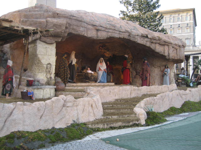 1º) Belén con figuras de tamaño natural, puesto en la Plaza de San Pedro del Vaticano.