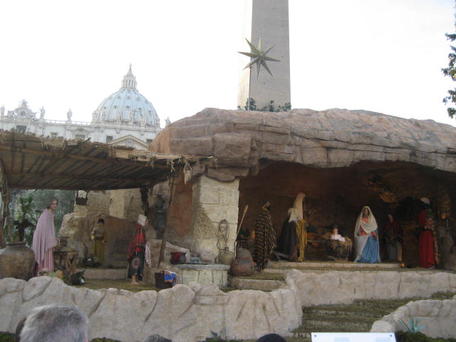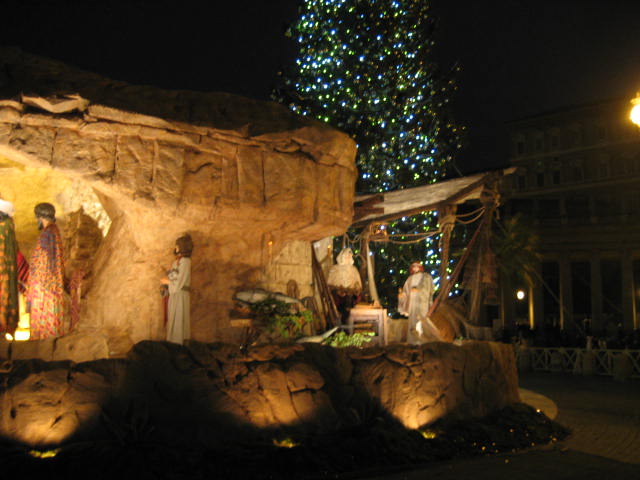 1º) Belén con figuras de tamaño natural, puesto en la Plaza de San Pedro del Vaticano.