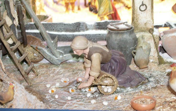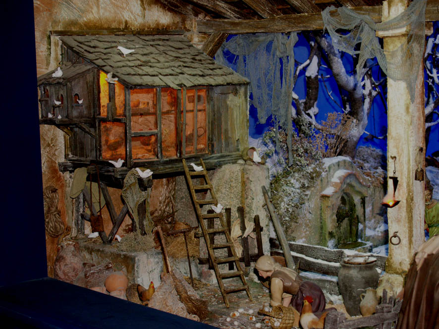 Me encanta el "gallinero" con palomar incluido y la señora que casi tiene ya... la tortilla preparada.
