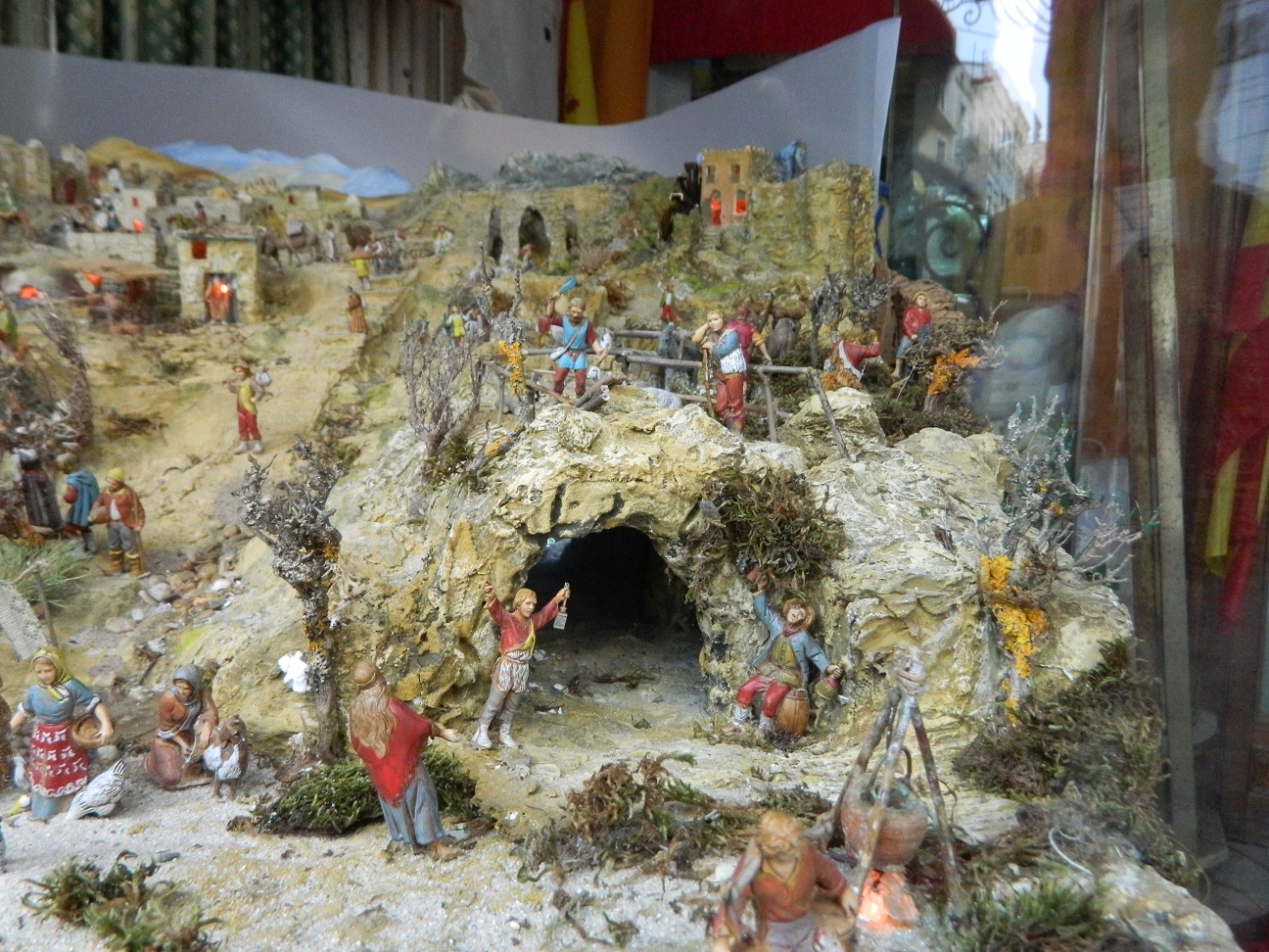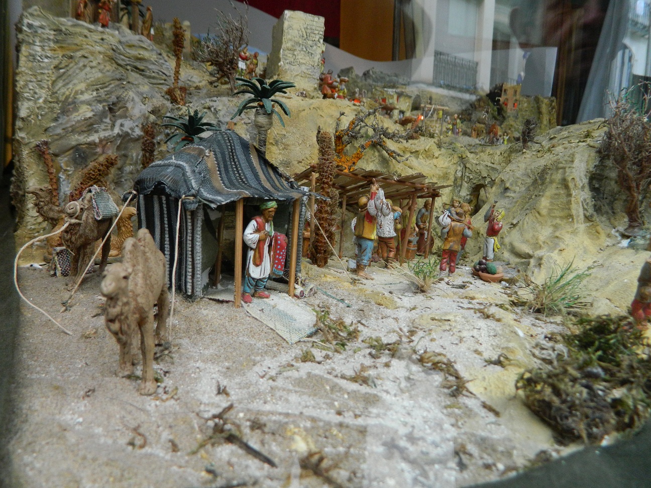 Belen en el escaparate de una tienda, con figuras de no más de 5 cm's de Landi