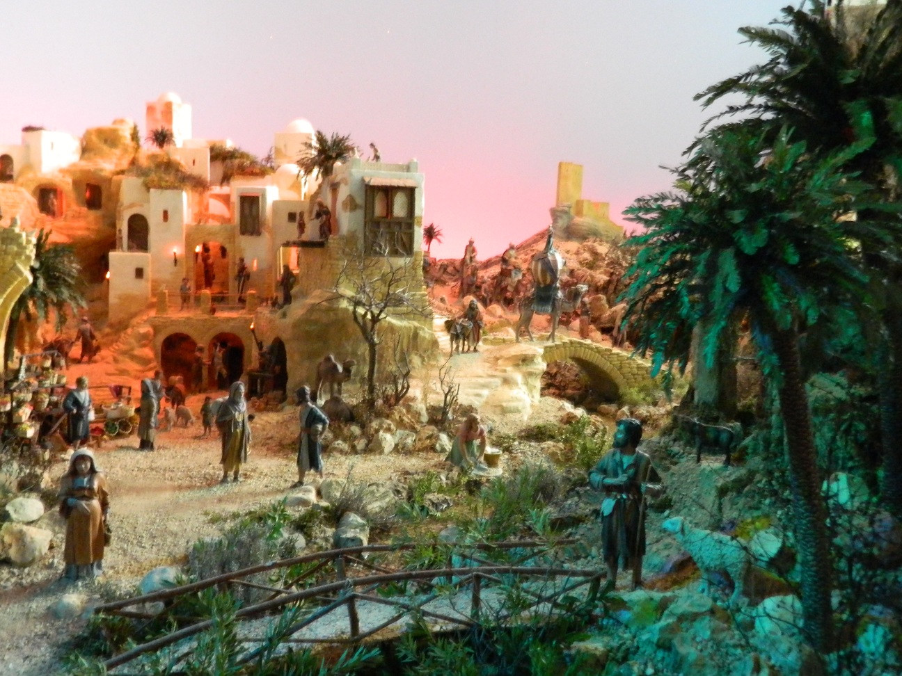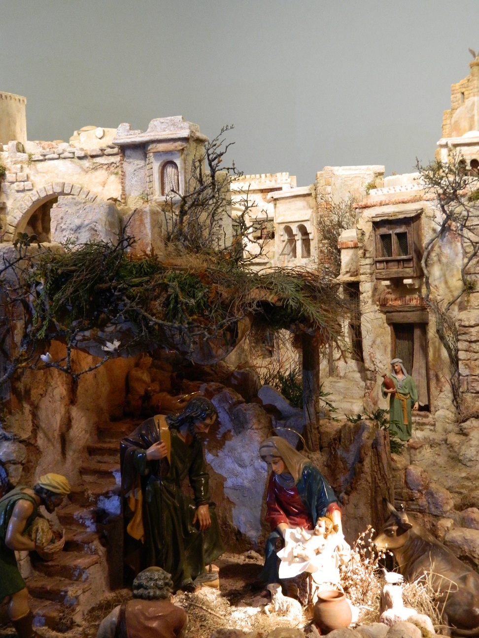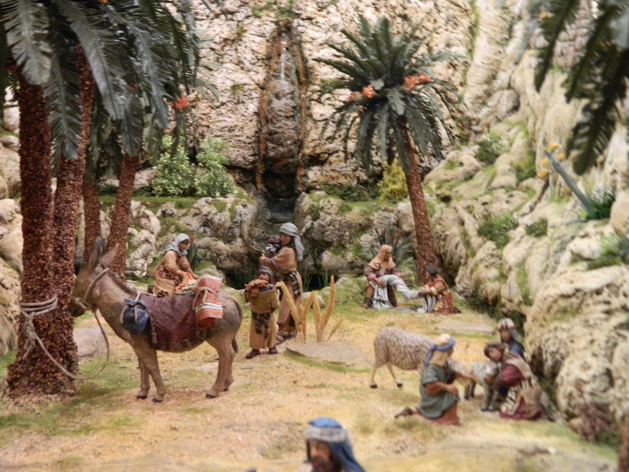 Vaya maravilla de Belén, sin lugar a dudas de lo mejorcito que he visto estas navidades. Lleno de detalles, a destacar la cueva de la natividad, la de los pastores y el pueblo. Hacen un uso estupendo de lo que la naturaleza ofrece, con unas rocas naturales que se acoplan de maravilla al paisaje, pizarra, plantas, muy poca utilización de la facil arena para cubrir y rellenar caminos.