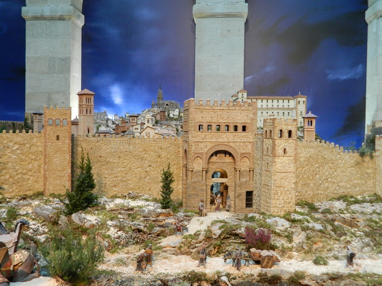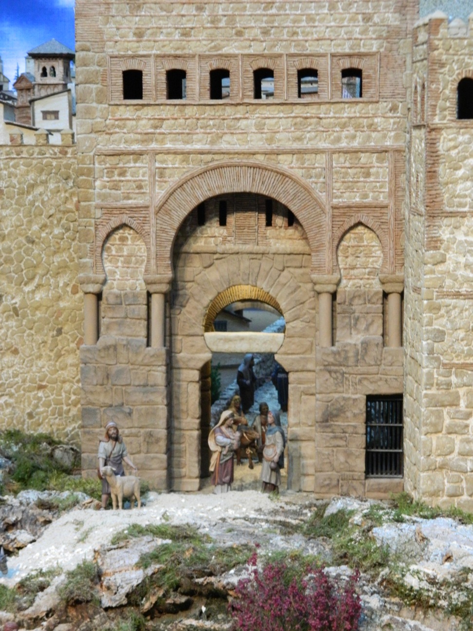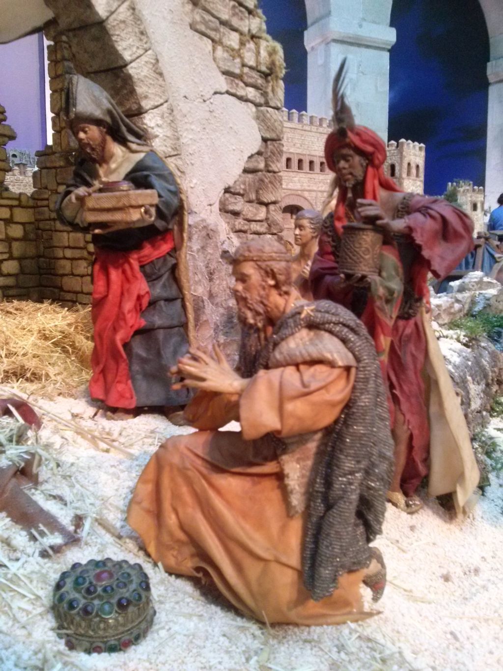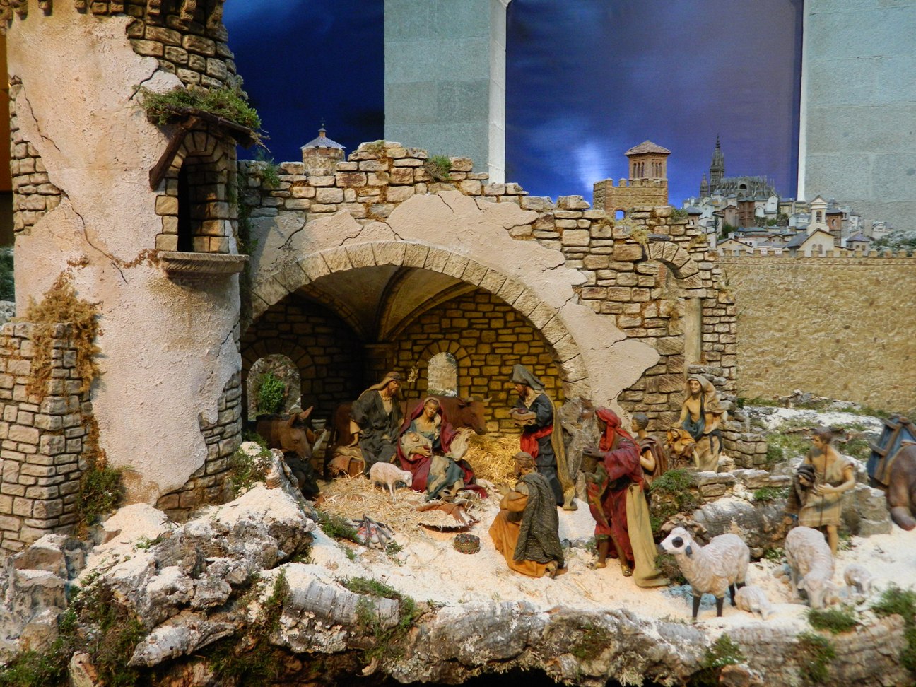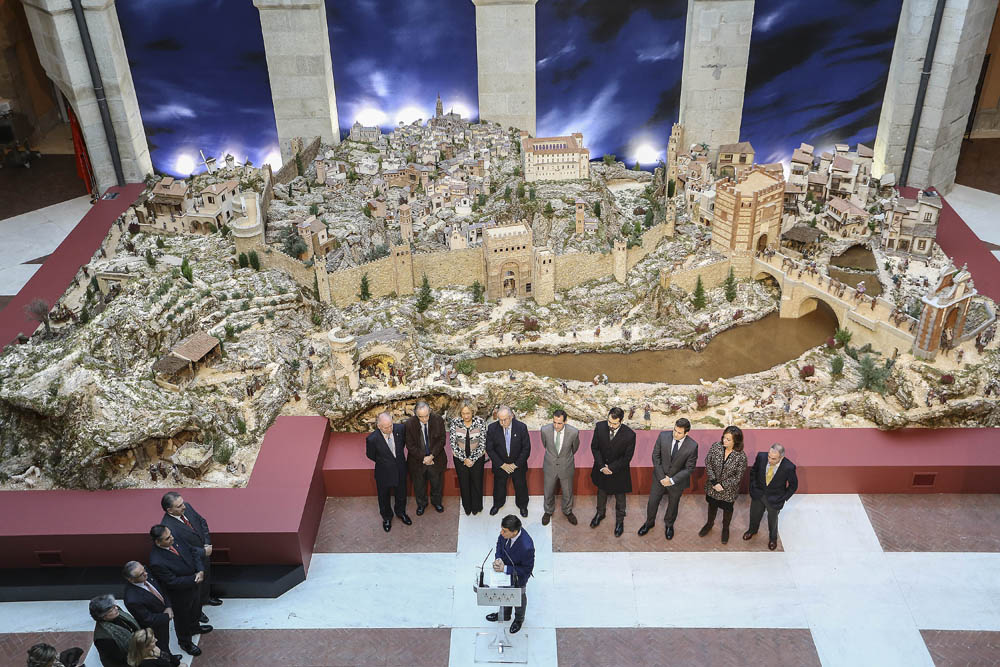 El Belén de este año como puede verse en la foto que ha subido Memen, es de un tamaño considerable y evoca el recuerdo del Greco como telón de fondo, y con ello la ciudad de Toledo tal como estaba hace 400 años. Pero lo importante es el BELÉN, el primer término, y en él se encuentran el Nacimiento con pastores y reyes adorantes, la Anunciación a la virgen Maria, la Anunciata y la Cabalgata de los reyes magos, básicamente, entre otras escenas.