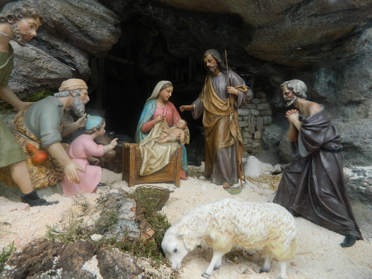 La gran mayoría de las figuras son de los talleres de J osé Luis Mayo y un 15% de Nicolás Almansa , pero quiero destacar las figuras de la Natividad y la Anunciación, que son especiales. La Natividad está formada por figuras de Obdulia Acevedo , de la colección particular de la familia Cruz-Maseda, que han tenido la amabilidad de cederlas para este montaje, de aproximadamente 28 cm, de papel y telas encoladas, que por el peculiar estilo de la autora nos evoca pinceladas “grequianas”. Y por esto se ha elegido Obdulia Acevedo para la más importante escena del Belén. Adjunto fotos cedidas por nuestro amigo forero bob-trenzzas .