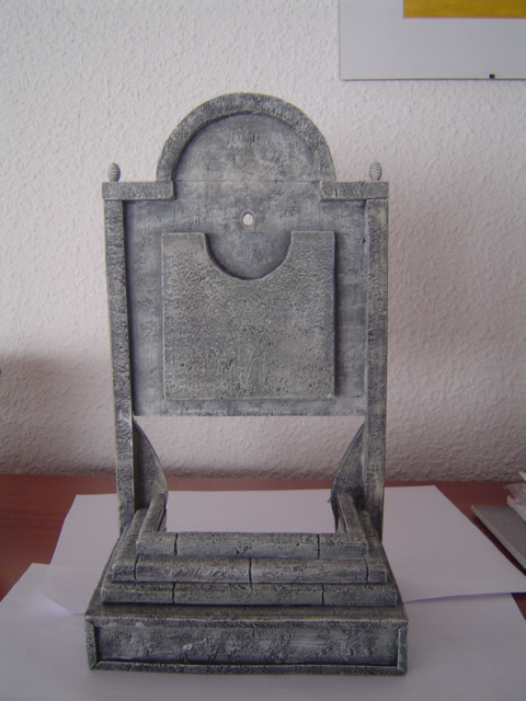 Aunque he seguido fielmente el boceto incial, me he permitido alguna modificación relativa a los bajorrelives, pues al hacer la estructura de la fuente, he probado a hacer los bajorrelieves tallados en porexpan y creo que he acertado pues se unifican totalmente con la textura de imitación a pìedra de la fuente.