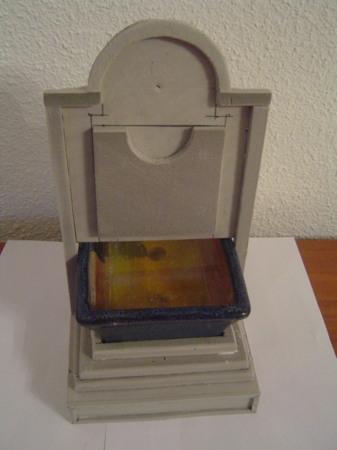 Silvia lo que le falta a la fuente es lo que le digo a Santi, la vegetación que rodeará a la fuente y la pared donde irá colocada, pero además pienso poner unos pájaros posados por el vaso y por la fuente que darán mucho mas movimiento y colorido a la escena; ya se que la fuente sola no dice nada pero si os fijais en las fuentes que hay en otros trabajos todas son por lo general mas sencillas que esta pues como puedes ver tiene tres tipos de materiales, uno es la priedra de granito, otro es el bronce del grifo y el otro es la cerámica del vaso, por lo que creo que cuando esté colocada en su sitio cambiará totalmente su estética. Yo veo que como estoy haciendo una cosa diferente y voy subiendo cosas segun las hago de una manera aislada, parecen bastantes simples y desde luego dan la sensación de lo que tu dices que le falta algo, pues claro que le falta, le falta todo el conjunto donde va colocada y a eso es a lo que estamos acostumbrados a ver belenes terminados, pero bueno ya habrá tiempo de ver este belén totalmente terminado con todos sus detalles, que van a ser unos cuantos, yo diría que muchos.