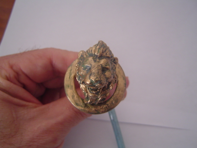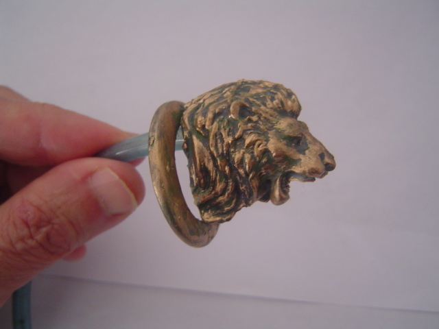 Lo de la cabeza del león no he hecho copia pues se trata de una cabeza cortada de una figura de plástico comprada en los chinos que he tuneado de tal forma que parezca que se trata de bronce viejo, asi que no hay copia, pero puedo tener todas las que quiera, solamente comprar tantos leones como grifos quiera hacer, también hay tigres y otro tipo de animales, ya ves que sencillo, no he tenido que modelar nada.