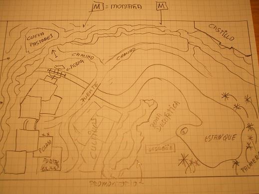 Por si te pudiese servir, te adjunto mi visión del pueblo que he dbujado en el plano, visto desde los cultivos.