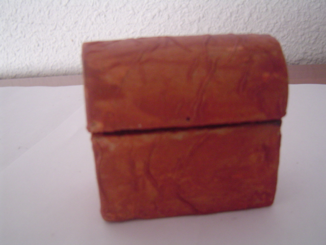 Santi muchas gracias por tus comentarios y por tus felicitaciones, las fotos no son muy buenas pero en vivo el baul tiene una buena calidad ya que parece no de madera sino de cuero; he seguido la técnica de Lola (a quien agradezco sus videos) de imitar la piel, luego con estaño de manualidades he hecho los herrajes y las partes del metal. El repujado es muy simple pues es muy pequeñito. Al final le he dado una pequeña capa de oro viejo Kokolo y lo he envejecido con betún de judea, y bueno, en vivo tiene un buen aspecto, mucho mejor que en foto (yo es que la fotografía definitivamente no es lo mio, pero hago lo que puedo).