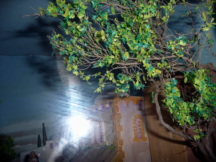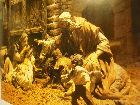 Para poder comentar lo que contiene el libro hay que tenerlo, es muy bueno, porque no sólo tiene bocetos, tiene la manera de montar un belén: la aparición del Angel. la iluminación, el agua, etc y una fotografías de sus belenes preciosas, las fotografías y los belenes, hay pongo dos para que veaís que no exagero.
