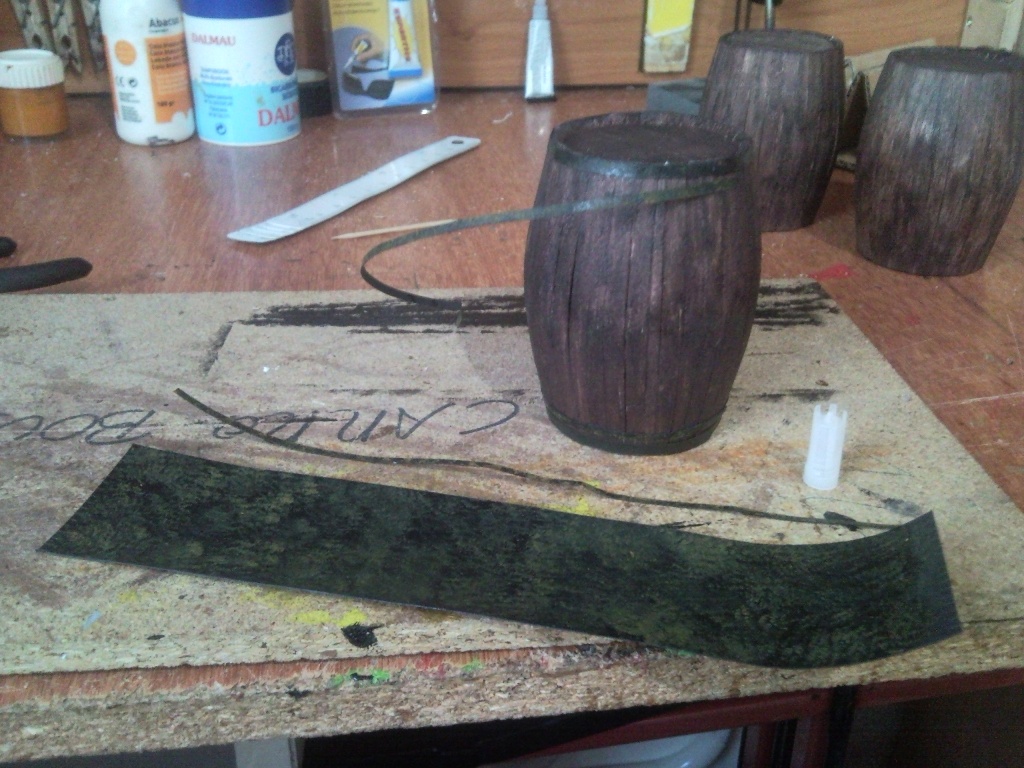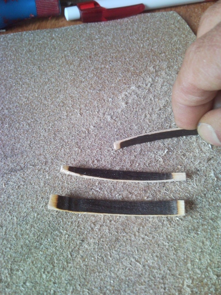 Las duelas son más alargadas, pues las tapas laterales hay que forrarlas con madera de balsa de 1 o 2 mm, y al final de todo lijarlas para que queden todas iguales.
