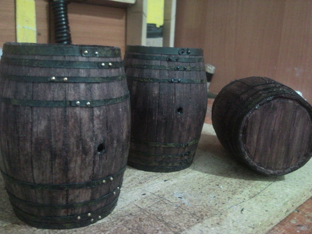 En bocoies las medidas suelen ser de 100 cm círculo central, 80 cm lateral y 115 cm de longitud, y pasando esto a escala y rebajando los grosores, nos salen las medidas de: