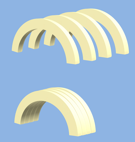 ........................   También puedes usar el porexpán o el politelino extruído, cortando varias piezas en forma de arcos y uniéndolas entre ellas (como si dieras cortes transversales a la bóveda. a modo de lonchas) .............................
