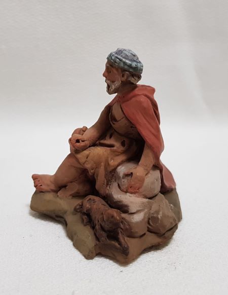 Las tres primeras son de un material parecido al barro, pero más oscuro y bastante pesado. La última (pastor con cordero) diría que es de yeso, puesto que no pesa nada y por debajo parece de un material blanco con una cobertura de pintura.
