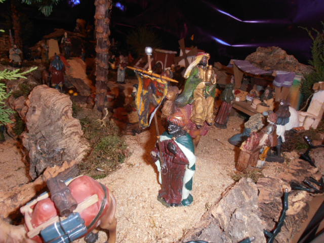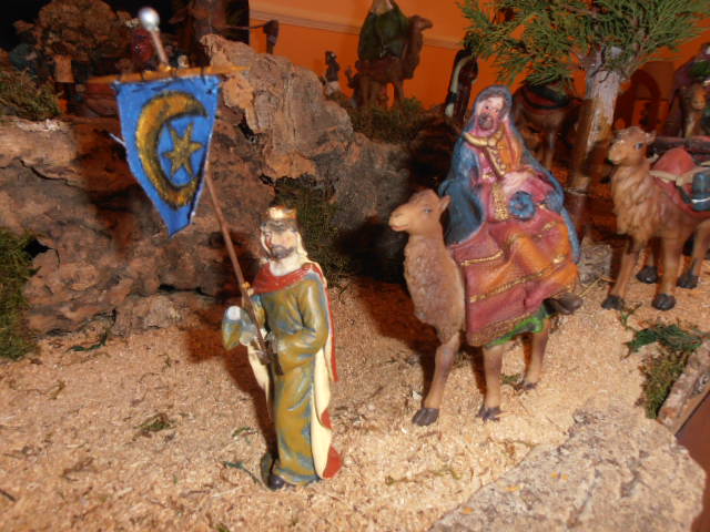 En mi belén 2014/2015, me ha dado este año por mejorar la cabalgata de los Reyes Magos. Suelo hacerlo con figuras de los chinos que son baratas y con el poco espacio y los pocos recursos que tengo, no me permiten hacer un belén como los que veo por el foro. Compré los reyes y me venían sin pajes y cogí unos Reyes que tenía de los inicios de mi Belén (iban andando, no tenían camellos) y los puse como pajes, compre unos camellos sueltos que acompañan y llevan las previsiones de los Reyes, que también forman parte de la cabalgata. Y a los pajes les hize con ayuda de mi novia, unos estandates que llevan, con los símbolos de los tres Reyes Magos. Espero que os guste y os sirva de referencia para vuestras ideas.