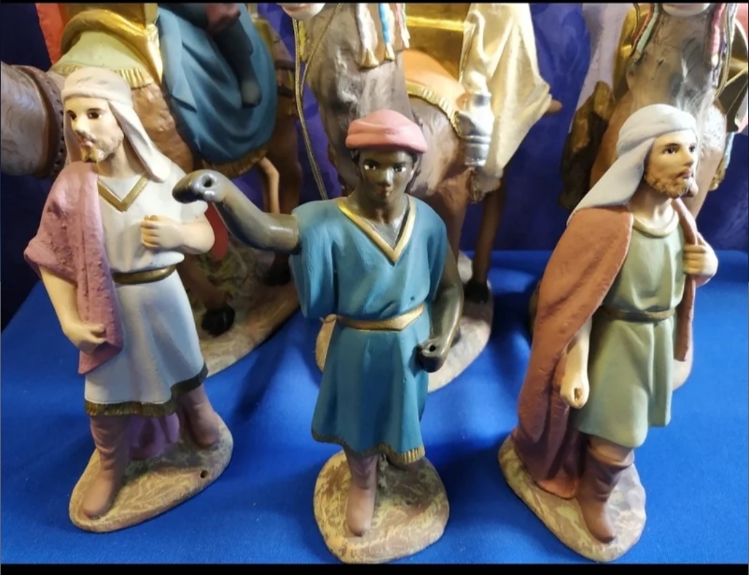 Vendo cabalgata completa de Reyes a camello y pajes de Olot serie 15cm en pasta de madera