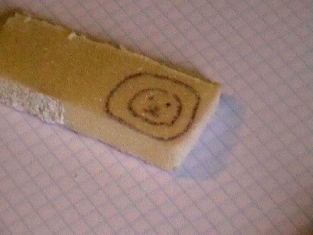 2.- vaciar la parte del 2º circulo (melena) a la mitad del grosor (tambien con cutter)