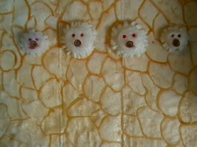 tras sopesar y no encontrar por añadidura, diversas sugerencias de los foreros: botones, talladas en pasta de modelar, en poliester, etc... he llegado a hacer concluyendo el problema las esculturas con POREXPAN EXTRUIDO; que no es tan esspectacular ni detallista, pero más real teniendo en cuenta que serían de tosca piedra tallada.