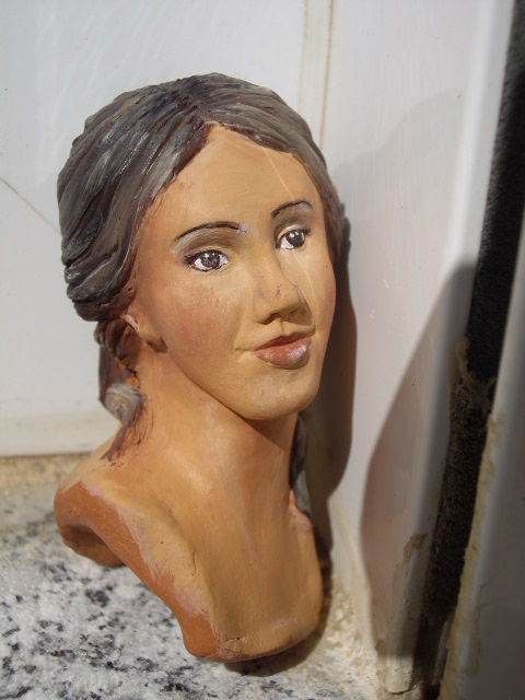 1º. Con témpera color Sombra natural, muy diluida lo embadurnas y con un trapo de algodón y agua si lo necesitas porque se seque la témpera, vas limpiando. La témpera resaltará aún más el modelado al penetrar en las zonas entrantes.