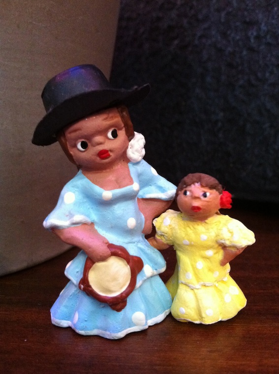 Tengo una amiga natural de Granada que por supuesto siempre pone su belén de "cabezones" (con perdón) este año ha tenido su primera nieta y he querido que pueda incorporarla al belén de la mano de su abuela, jeje