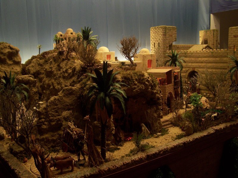 Hola Lola: Pues serias bienvenida, y una gran sorpresa para mi y un placer conocerte en persona. Pues mi Belén tiene 4 mt de largo por 2'10 de fondo, las figuras son entre 17 y 8 cm, son figuras hebreas de Oliver,Galan, Serrano. Tiene muchos efectos de sonidos y luz, narracion y efectos opticos.