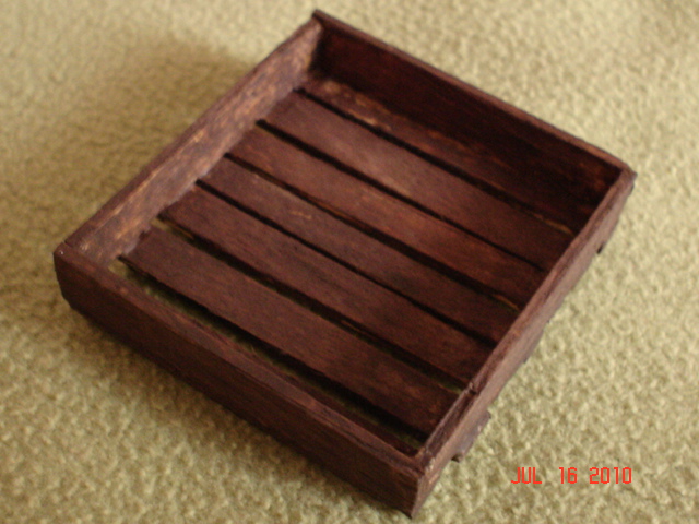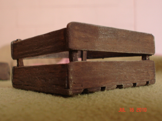 Jarota, todas las cajitas las hice con madera; en el nacimiento las coloco con distintas frutas o verduras y a su vez las coloco o sobre mesas (también hechas con madera) o en puestos de venta.
