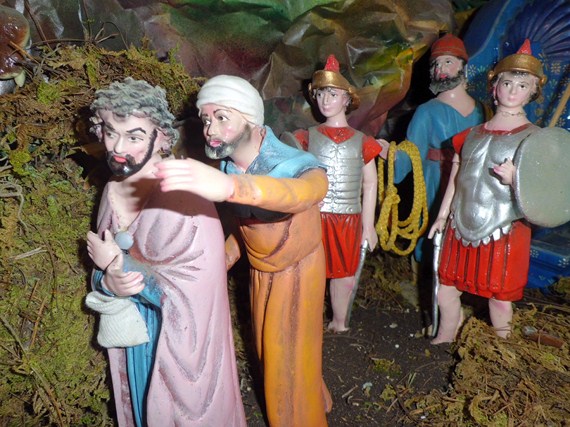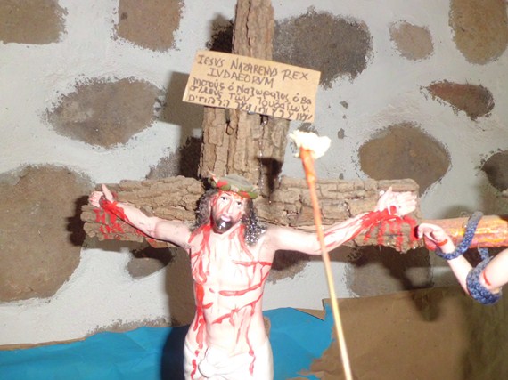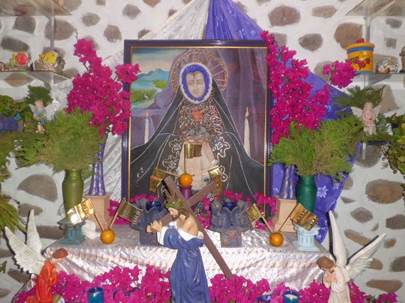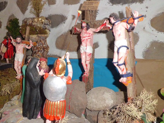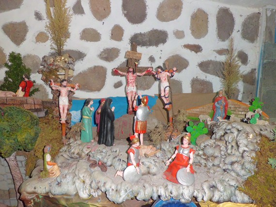 Este es el segundo año, en que montamos este Calvario, que se acompaña de dos escenas del triduo Pascual: La agonía de Nuestro Señor Jesucristo en el huerto de Getsemaní y la Resurrección, las figuras son del artista jalisciense don Florencio Reyes Lomelí, en México tenemos muy arraigada la devoción a la Virgen Dolorosa y en el sexto viernes de cuaresma la celebramos montando un altar, singular expresión de nuestro sentir mexicano, este Calvario lo ponemos como complemento del mencionado altar de Dolores...Lo pongo a su consideración