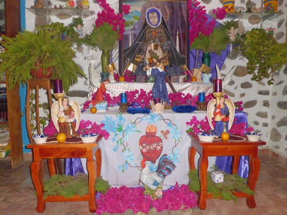 Este es el segundo año, en que montamos este Calvario, que se acompaña de dos escenas del triduo Pascual: La agonía de Nuestro Señor Jesucristo en el huerto de Getsemaní y la Resurrección, las figuras son del artista jalisciense don Florencio Reyes Lomelí, en México tenemos muy arraigada la devoción a la Virgen Dolorosa y en el sexto viernes de cuaresma la celebramos montando un altar, singular expresión de nuestro sentir mexicano, este Calvario lo ponemos como complemento del mencionado altar de Dolores...Lo pongo a su consideración