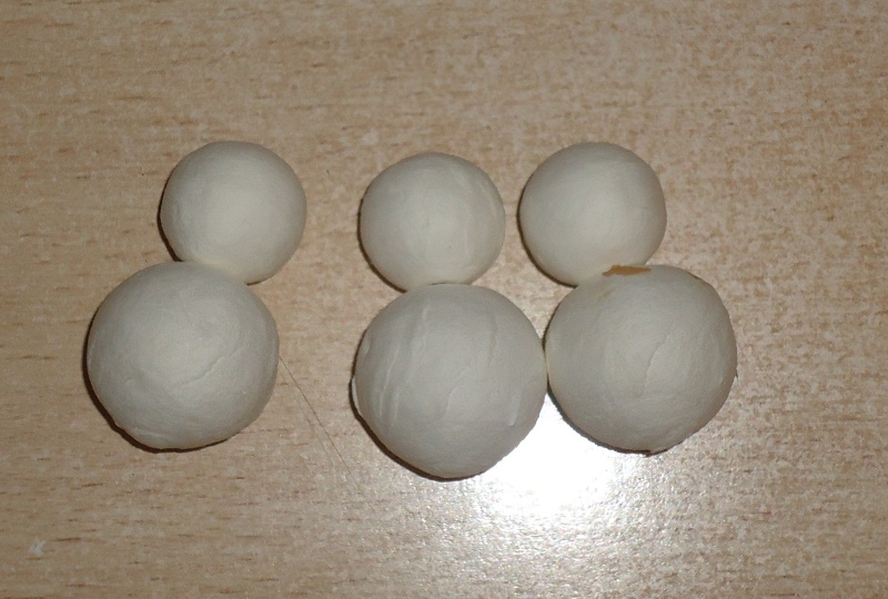 Se necesitan 6 bolitas de pórex,(en este caso són de papel prensado porque el tamaño es pequeñito y de pórex las encuentro fatal de este tamaño)