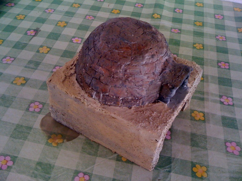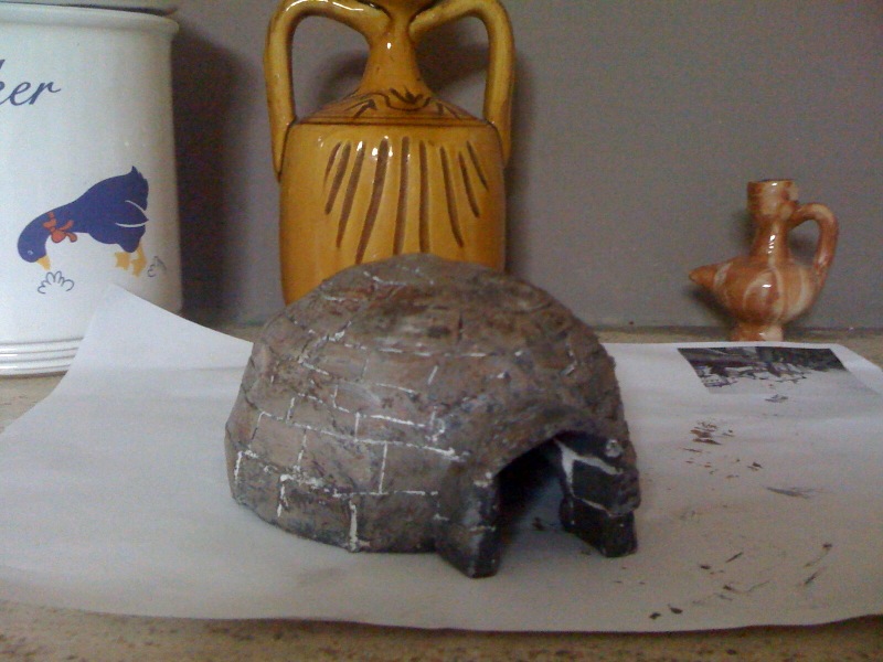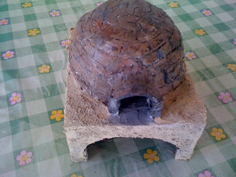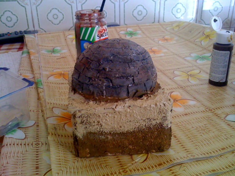 Material utilizado por una cúpula de plástico, el DAS y la piedra.das se encuentra un pedazo de la cúpula, dejar secar y afectan, a continuación, cambia a color con acrílicos, luego me la pared de piedras de hormigón, la base puse la arena y almizcles sintéticos Vinavil picada