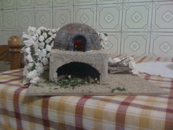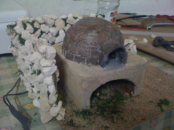 La pared de piedra esta muy bien hecha, felicidades. ¿Podria sugerir que ahumaras un poco el horno para darle mas realismo?