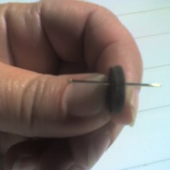 3 revestir la tapita con la cinta con el adhesivo hacia afuera.