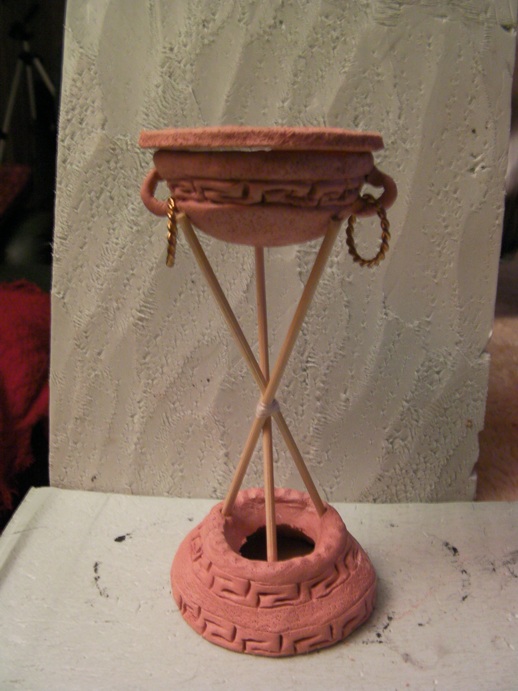 <p>Hola a todos: Entrar en: <a href="http://www.mibako.galeon.com/">www.mibako.galeon.com</a>   en el catalogo para belenes podreis encontrar el autentico y original pebetero grecoromano creado y diseñado por mí mismo hace mas de 1 año, como el nuevo diseño de pebetero para colgar. </p><p>Creo que Lola se ha basado en mi pebetero para hacer lo que aqui nos ha mostrado...un saludo.</p>