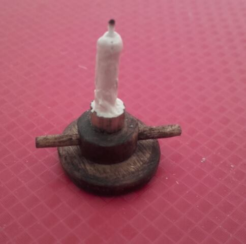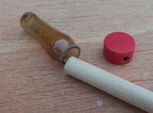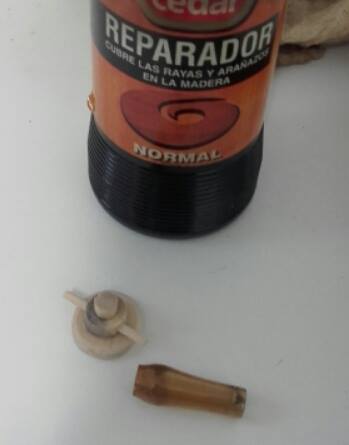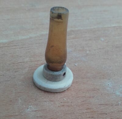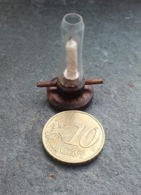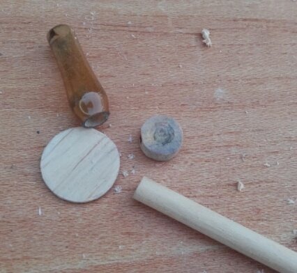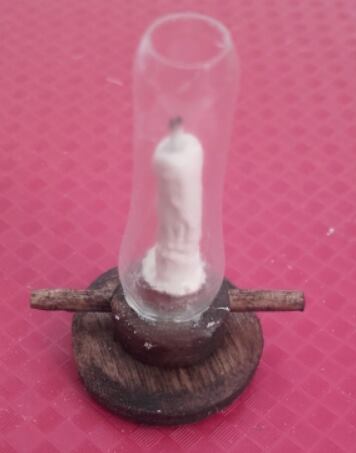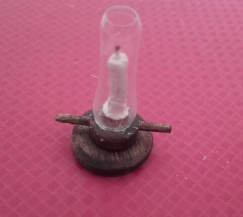 Proceso para hacer un candil usando madera y una ampolla de cristal