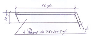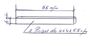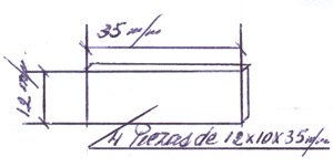 6) También del mismo listón de madera de 12 x 7 milímetros de sección, 4 piezas de madera de 35 milímetros de largo.