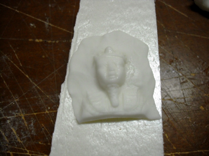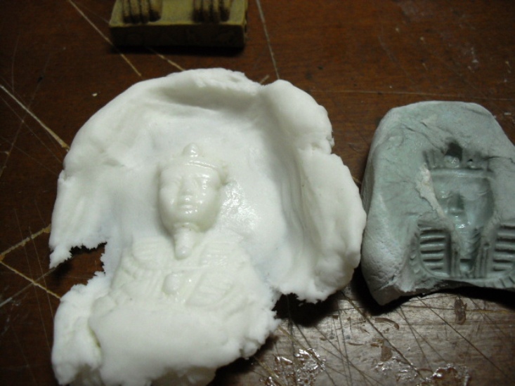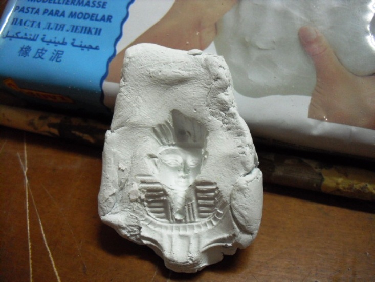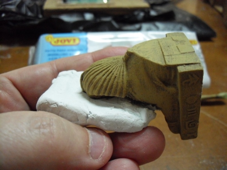 2.- Coger un trozo de pasta de modelar y presionar sobre la parte de la esfinge que queramos.