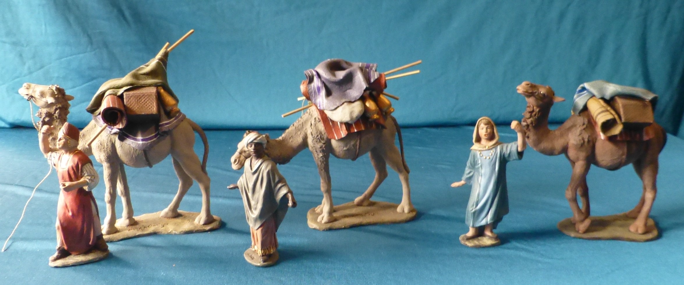 Caravana de seis dromedarios (B), con cargamento y conductores de 10 cm sin estrenar. Realizada y pintada por Mayo en exclusiva (son 6 piezas únicas), por 330 € + envío