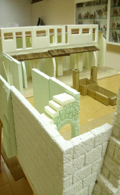 Hola, os presento uno de mis trabajos de este año para la Asociacion de Belenistas de Madrid, se trata de un Caravasar, sus medidas son de 2 metros de ancho por 2,90 de fondo. El Caravasar es un albergue o refugio en Oriente destinado a las caravanas de comercio, de peregrinaje o militares durante un largo viaje de muchas jornadas. Las palabras caravasar deriva del turco kervansaray, y ésta del persa karavan (viajeros) y sara ( hostal, refugio').