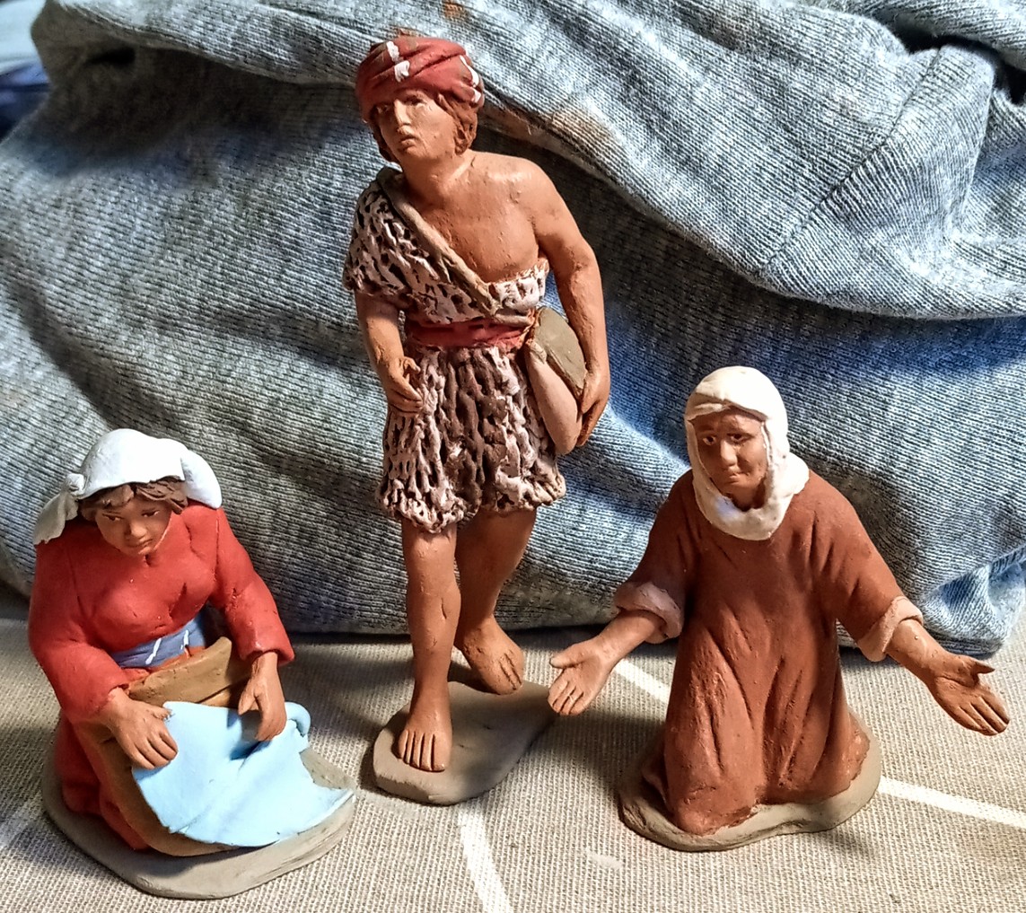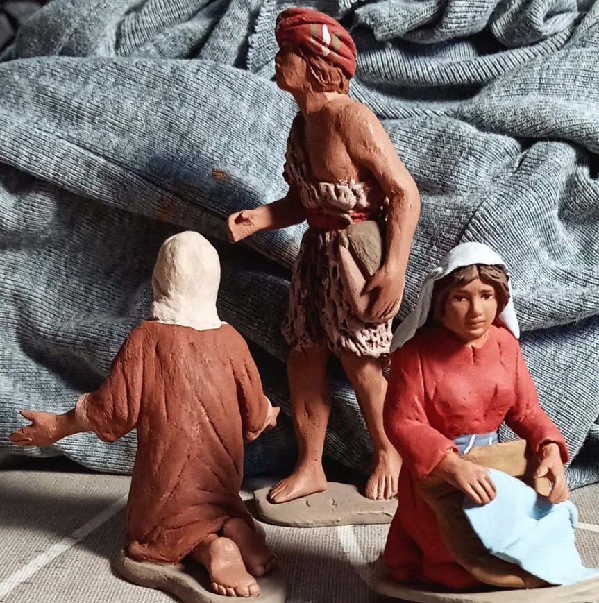 Y van tres más, de 'regalo' (de otro buen amigo), figuras de menor tamaño, alrededor de 10 cm. Es una pena que el autor no participa en la Feria de Alcobendas desde 2019, es una pérdida para los coleccionistas y los artesanos, ya que se desaprovecha la oportunidad de conocerlo en persona, de realizar ventas y de obtener posibles encargos que se facilitan mediante el contacto directo.