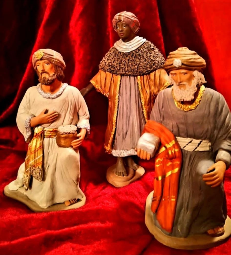 También figuras de formato mayor, como este Misterio y Reyes de 20 cms.