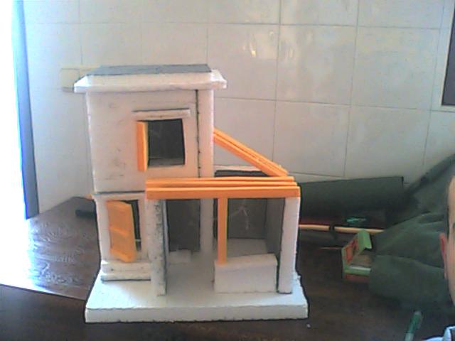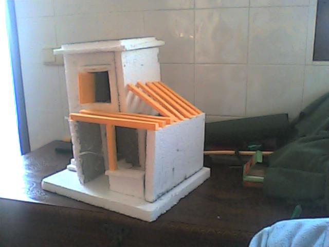Hola ancorva creo que la inclinacion del tejado es excesiva prueba a bajar un poco los 5 maderos de la parte derecha creo que te quedara mejor.